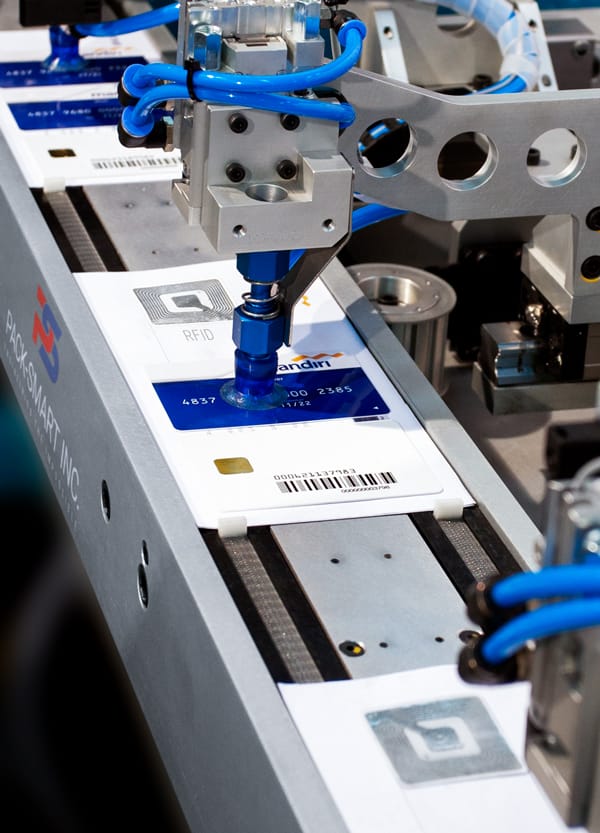 World’s first inline solution for high volume personalization, affixing, packaging and pack-out of secure open and closed loop cards at 20,000 PPH.